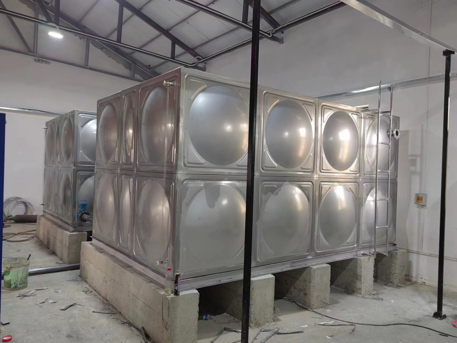 不銹鋼水箱施工方便快捷:標準沖壓板塊1000×1000、1000×500、500×500mm隨意裝配現(xiàn)場組裝焊接,無需吊裝設(shè)備。