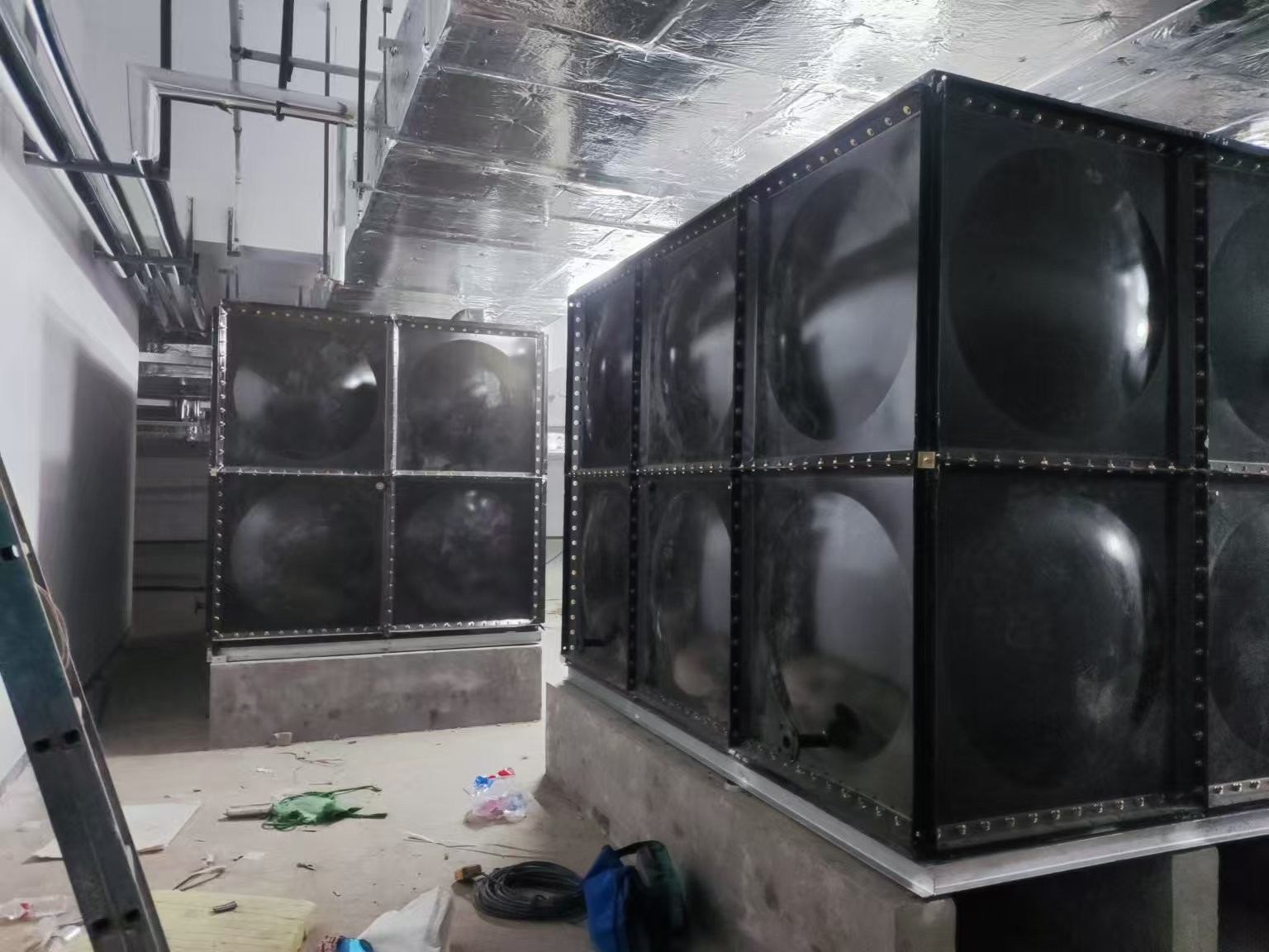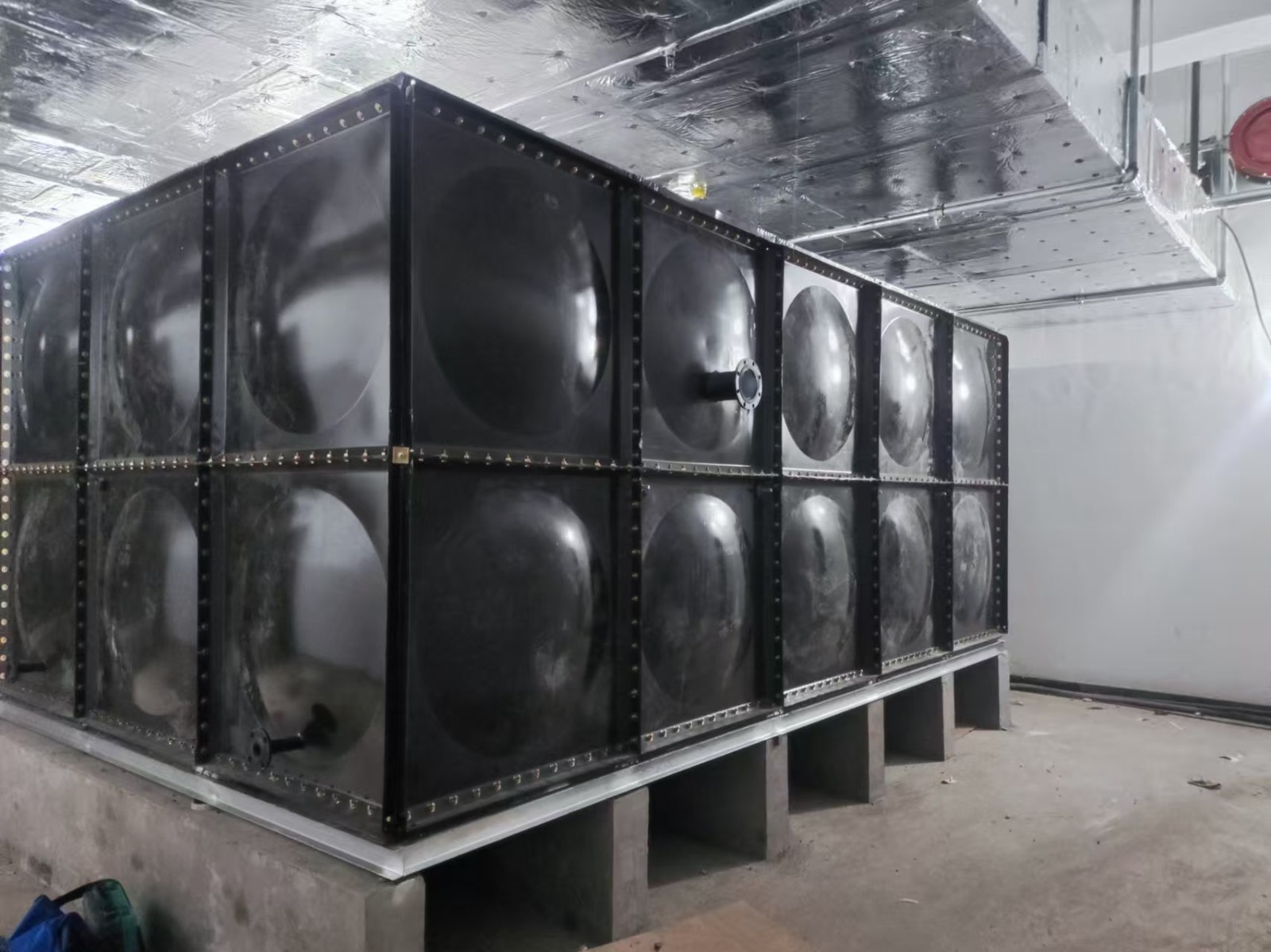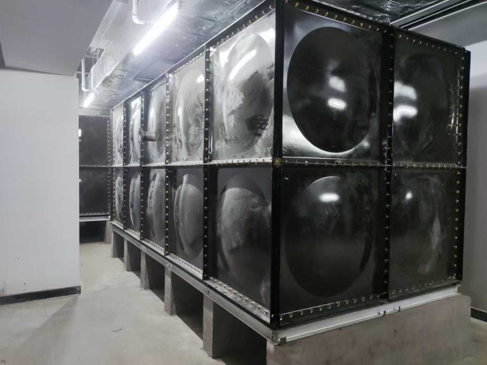 我司承接的山東濟南公安局人防項目,搪瓷鋼板水箱項目已安裝完成。搪瓷鋼板水箱的表面光滑,不易積聚污垢和雜質(zhì),這使得它易于清潔和維護?。搪瓷鋼板水箱的材料需經(jīng)高溫燒結(jié)搪瓷,這樣能使水箱板面形成致密釉層,與鋼板界面離子之間互相滲透,混合形成厚度約200-300微米的擴散層,加大了搪瓷面的附著強度。另外,搪瓷鋼板水箱的瓷面光滑才容易清洗,且耐腐蝕,而鋼板組裝結(jié)構(gòu),不易變形、抗震性強、抗沖擊力大。